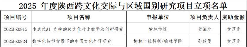 近日,陕西省社会科学界联合会办公室正式公布陕西省哲学社会科学研究专项2025年度陕西跨文化交际与区域国别研究项目立项结果,我院共获批2项。