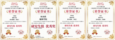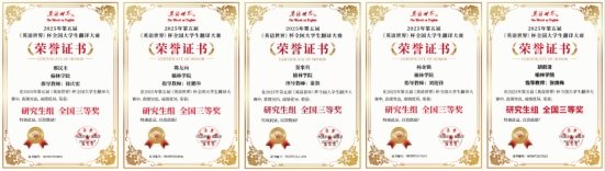 《英语世界》杯全国大学生翻译大赛由权威语言类期刊《英语世界》主办,是面向全国高校大学生与研究生的重要学术赛事之一。本届赛事参赛人数众多、竞争激烈,我院能够斩获佳绩并获得组织类奖励,得益于学院长期坚持的高质量翻译人才培养路径。